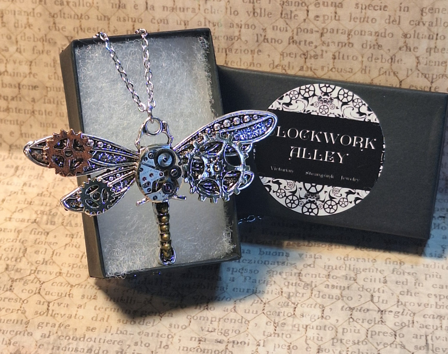 Large Steampunk Dragonfly Watch Movement Pendant Necklace