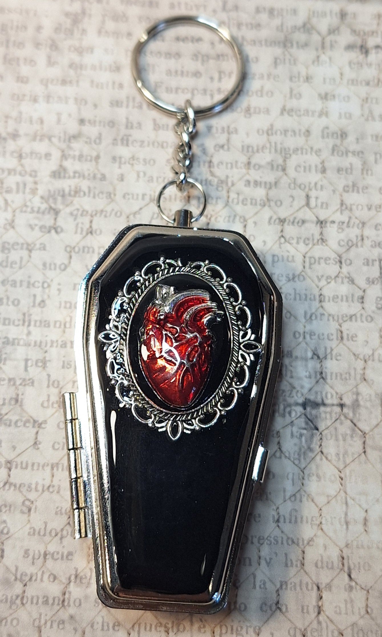 Anatomical Heart Coffin Trinket Box Holder Keychain
