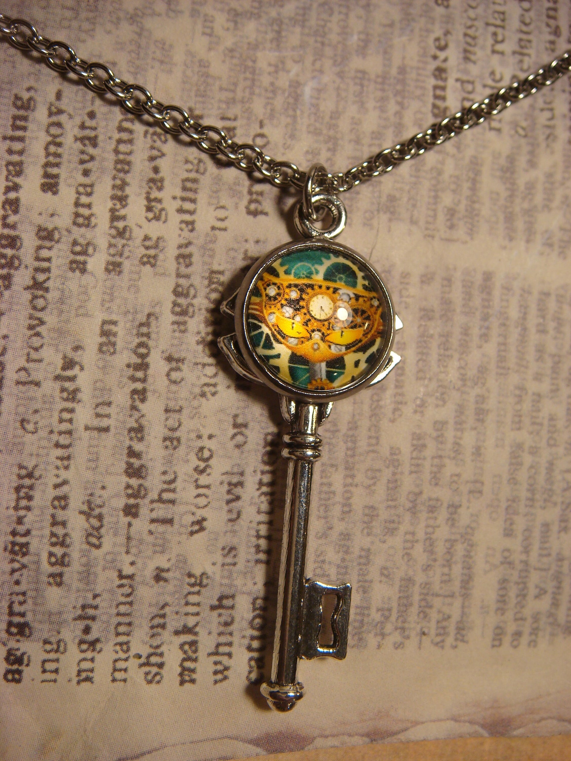 Steampunk Cat Image Key Necklace