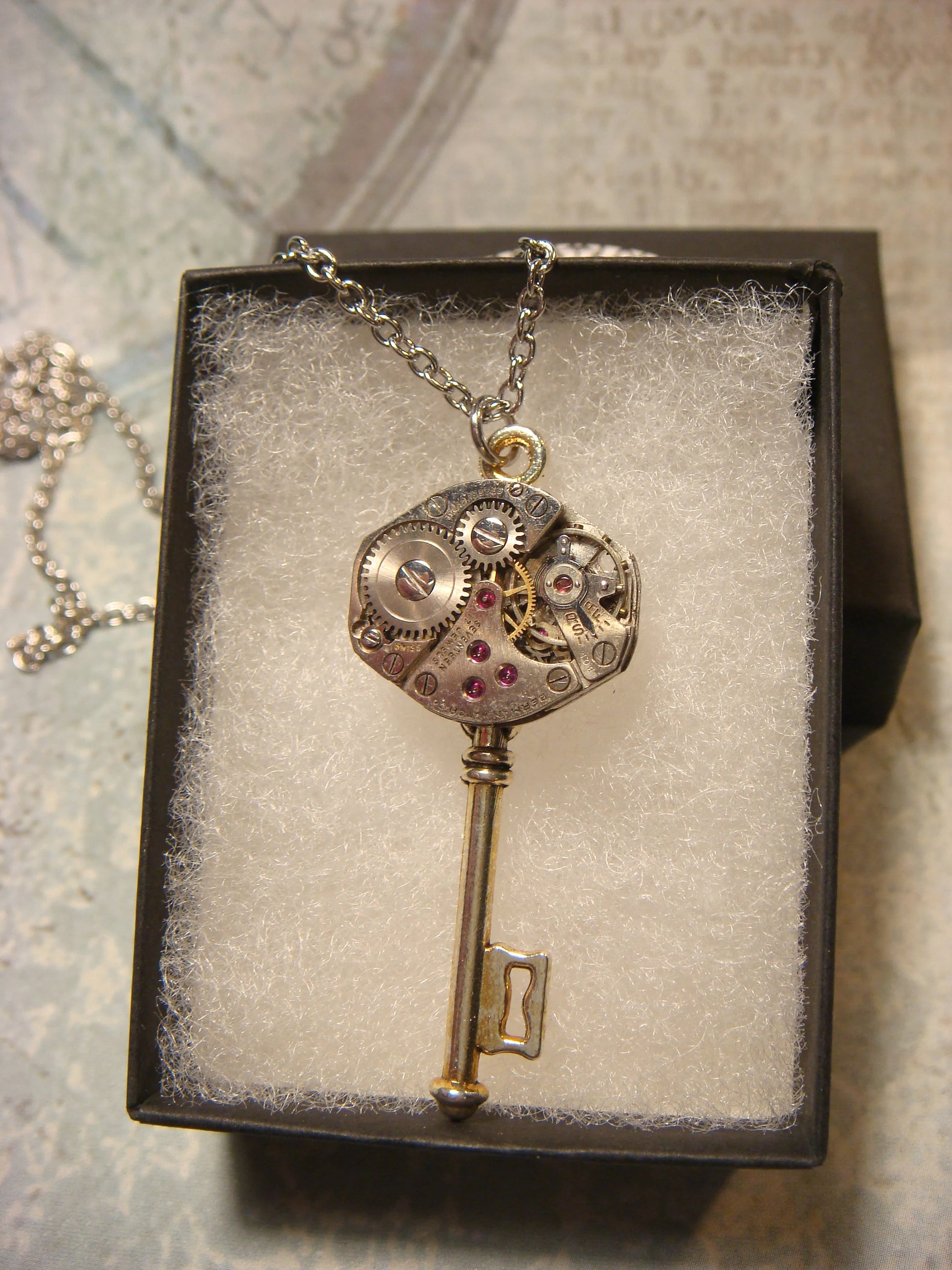 Steampunk Key Watch Movement Necklace with Exposed Gears