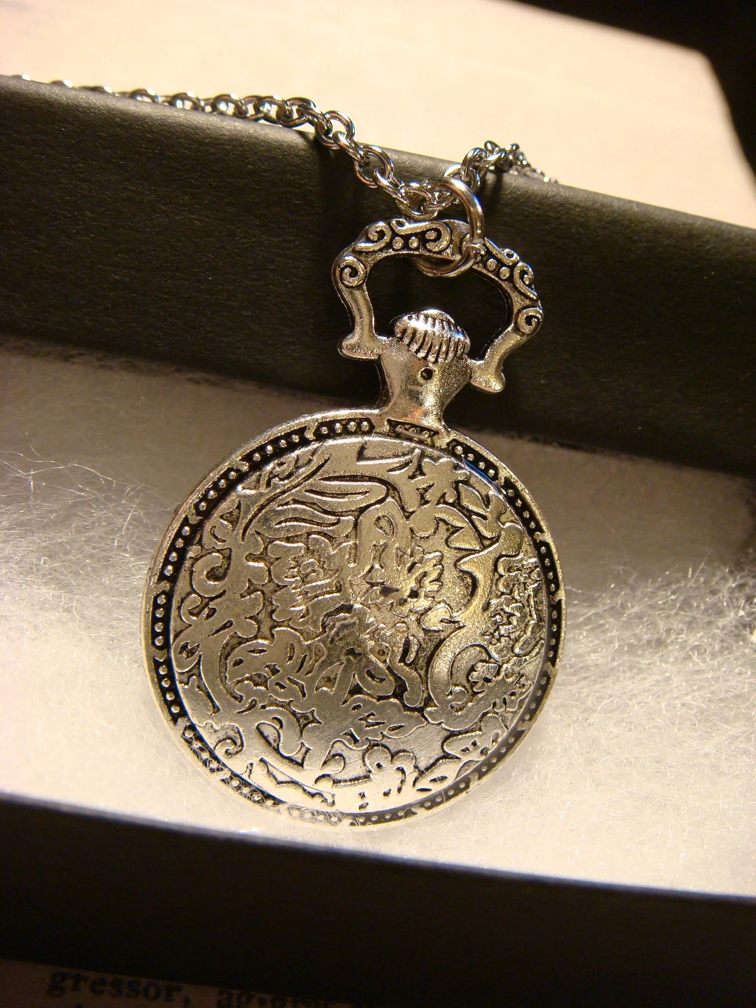 Tree Heart over Clock Pocket Watch Pendant Necklace