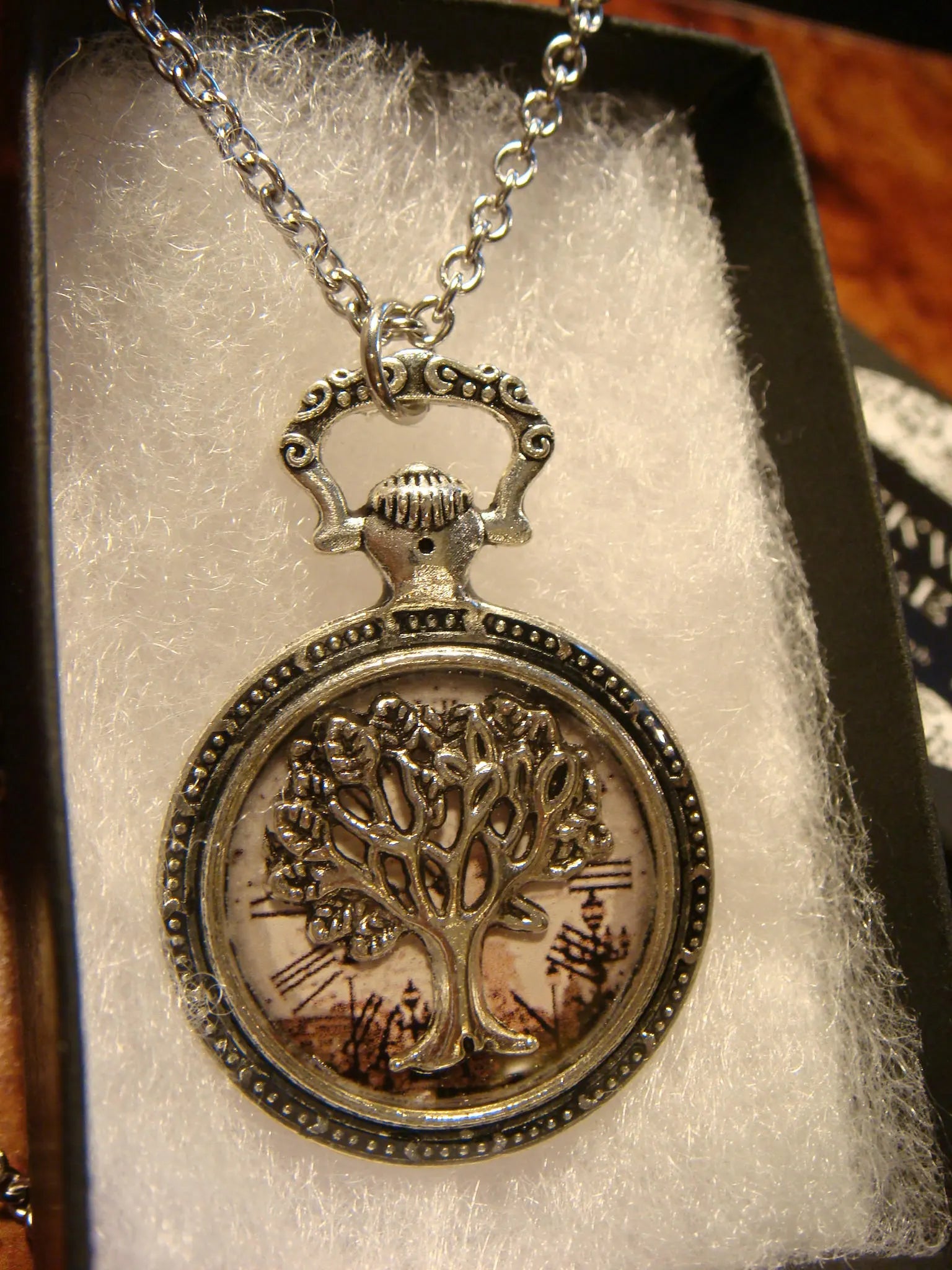Tree of Life over Victorian Clock Pocket Watch Pendant Necklace