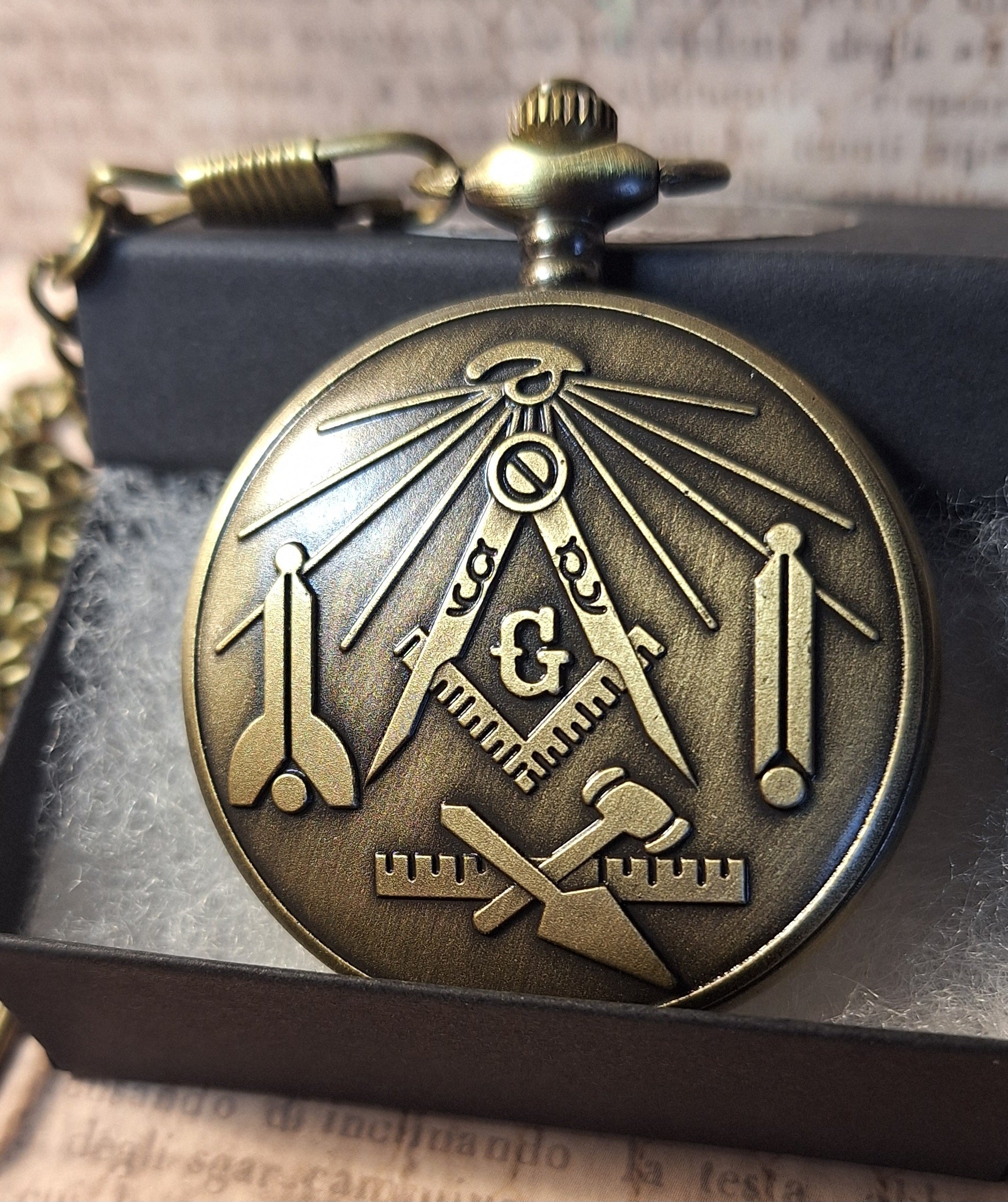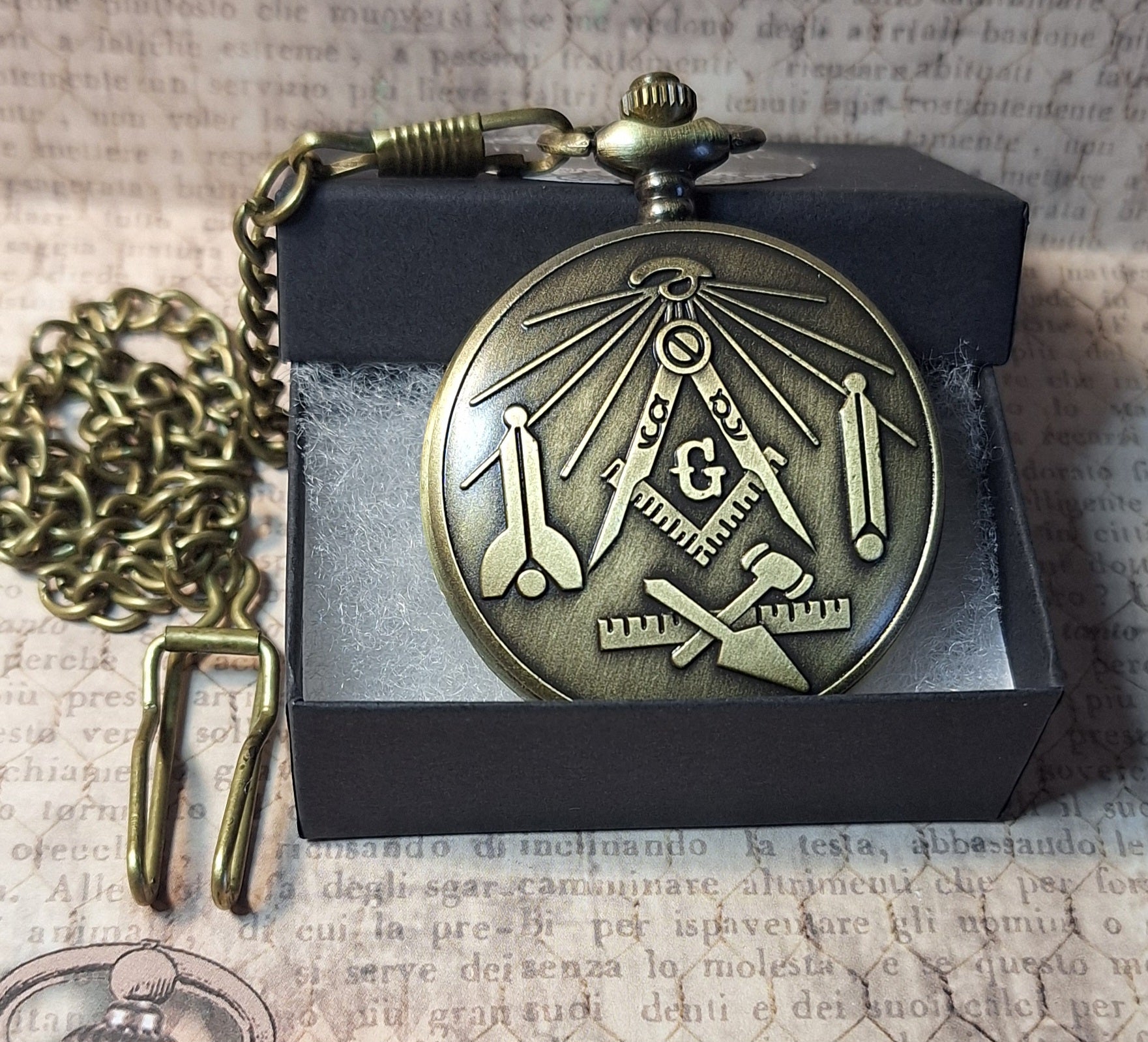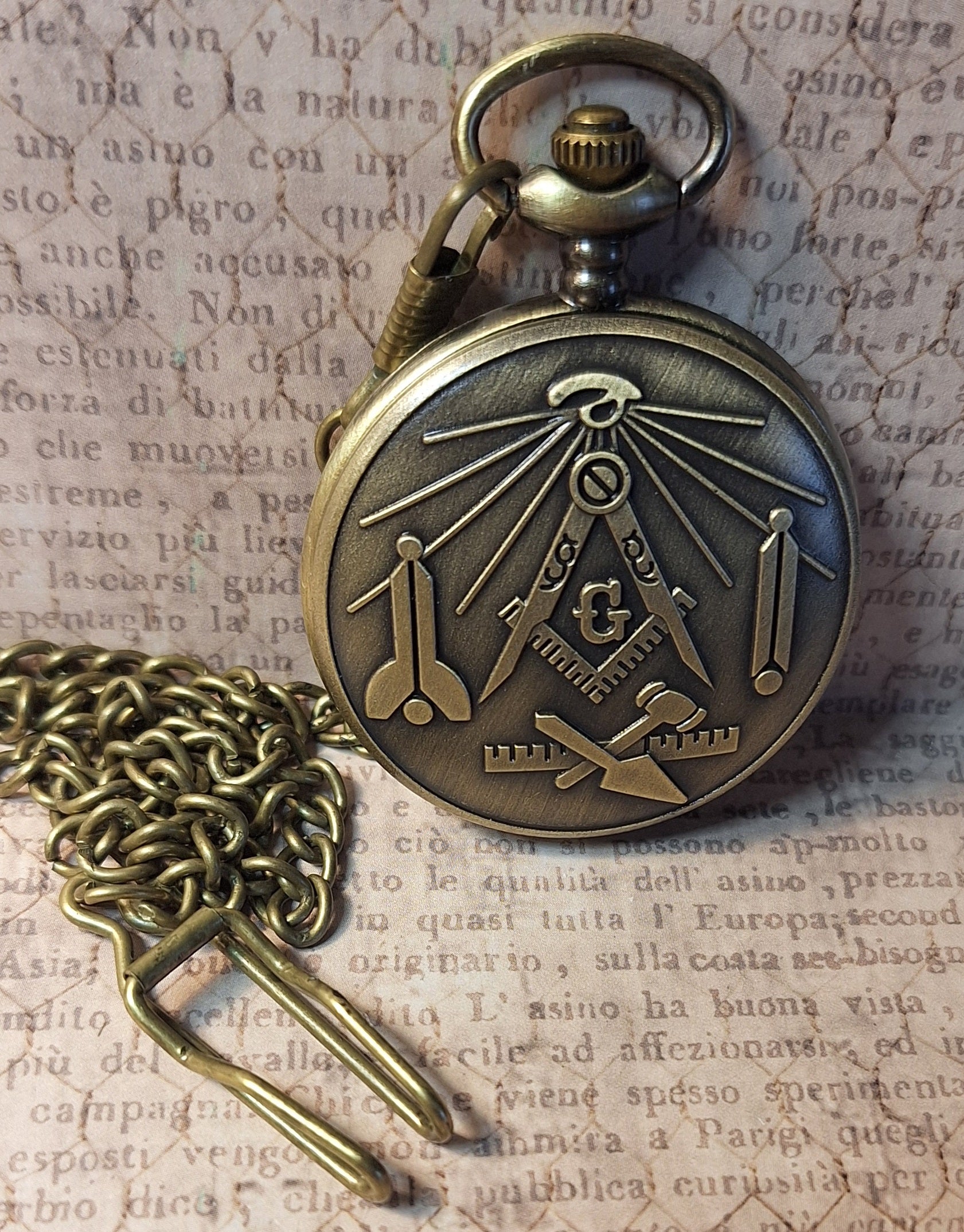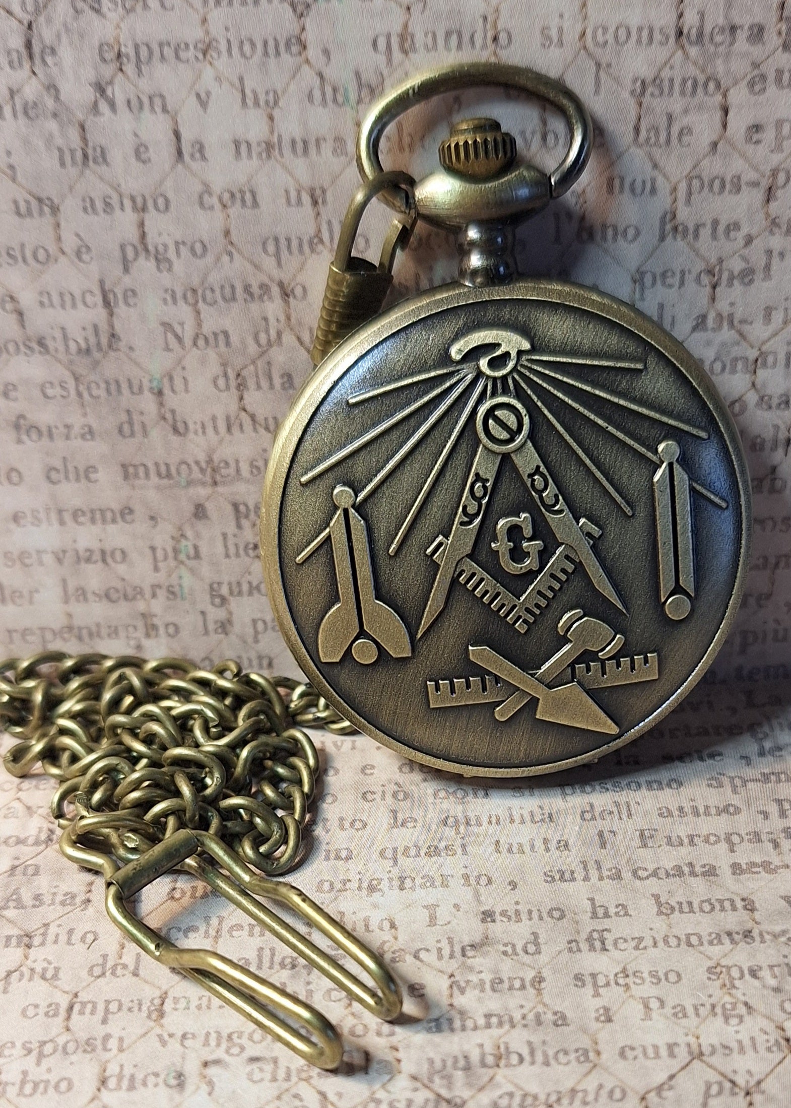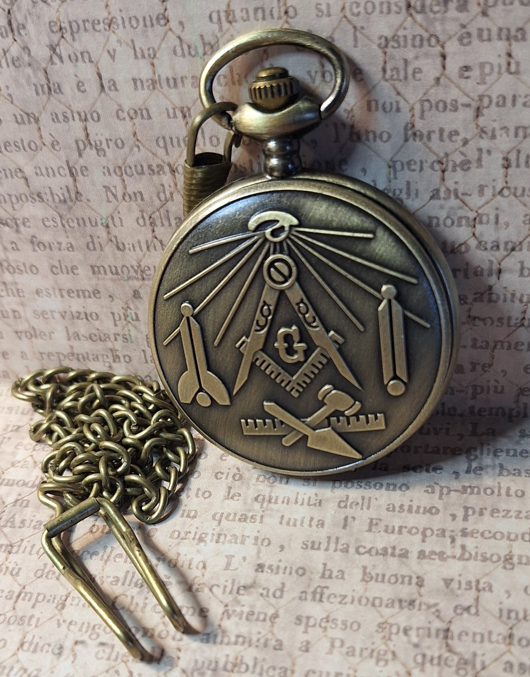 Working Free Mason Pocket Watch with Fob Chain