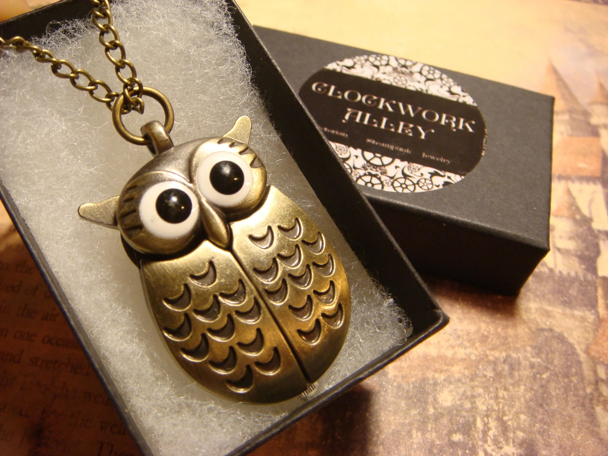 This adorable owl necklace is a functional, battery operated clock/watch. Pinching the ears together opens the wings to reveal the time!