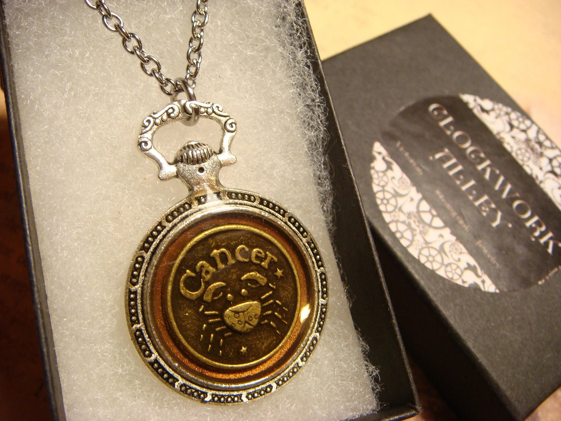 Zodiac Cancer Pocket Watch Pendant Necklace